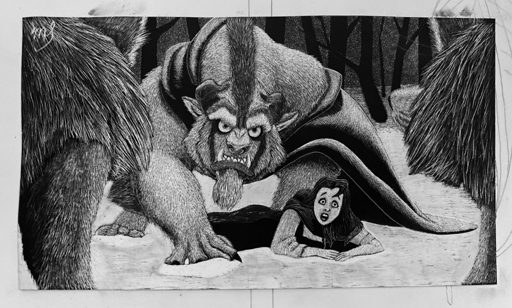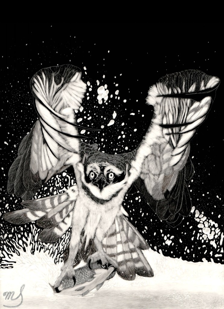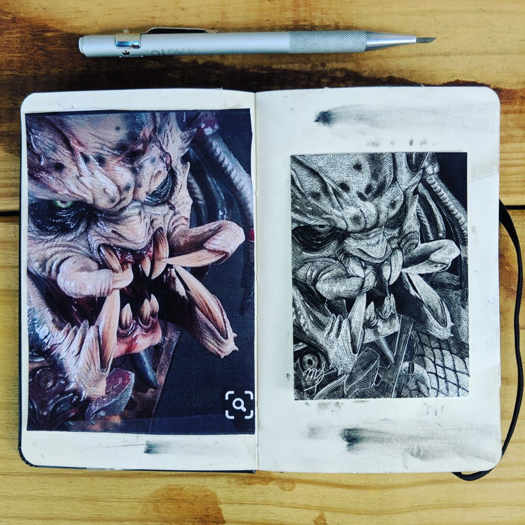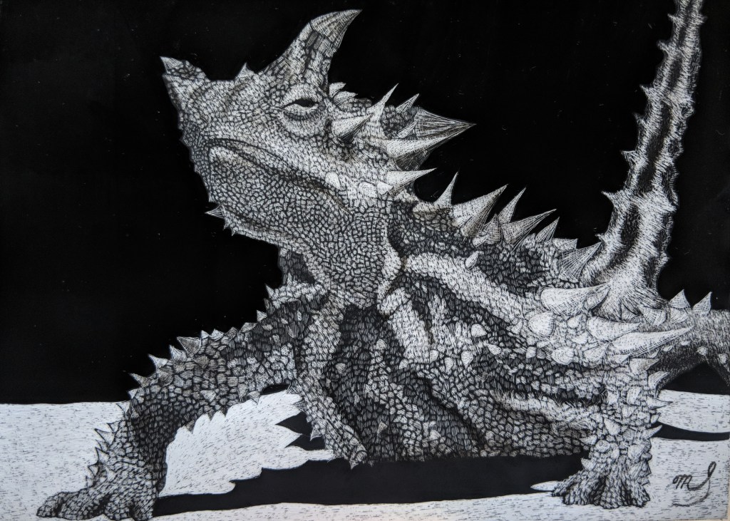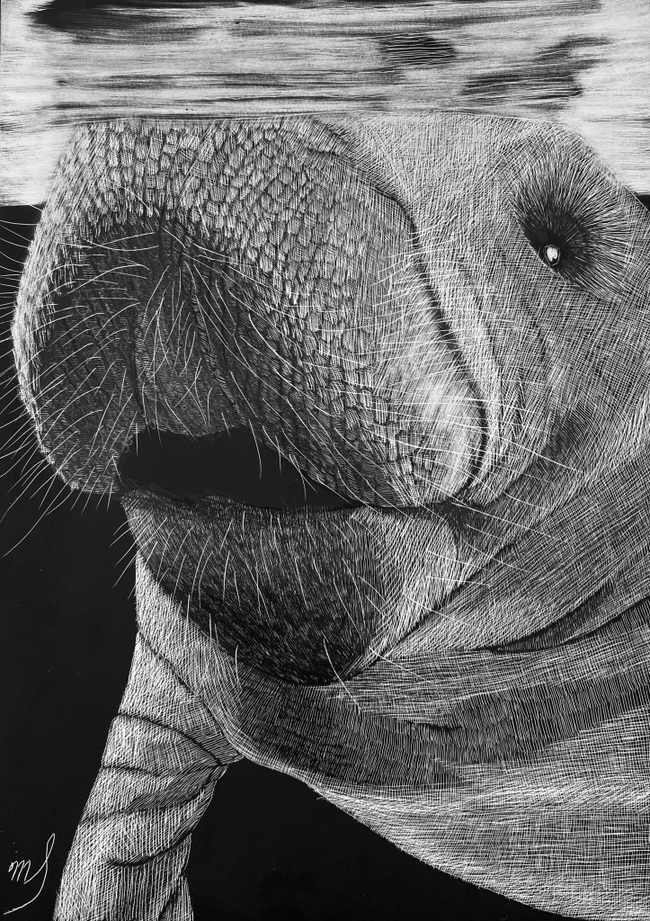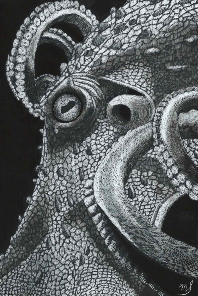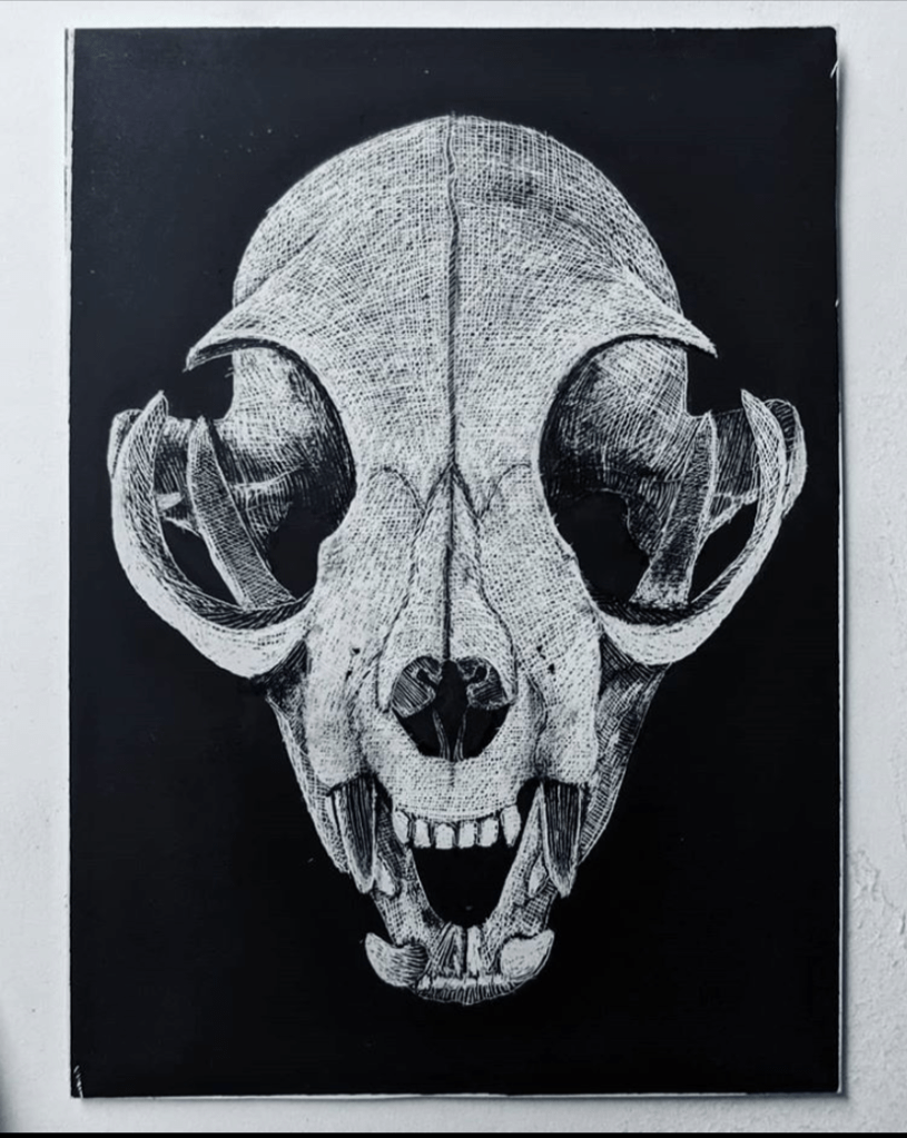 Scratch Art consists of two types. A scratchboard is a piece of particle board covered with a layer of white clay that is then covered with a layer of black India ink. Scratchpaper is a white piece of paper with a thin layer of plastic that is then covered with a layer of black India ink. Regardless of the type, the black ink is scratched off using primarily an Xacto knife and various other sharp tools. Basically drawing in the negative where the whole point is adding layers of highlights.